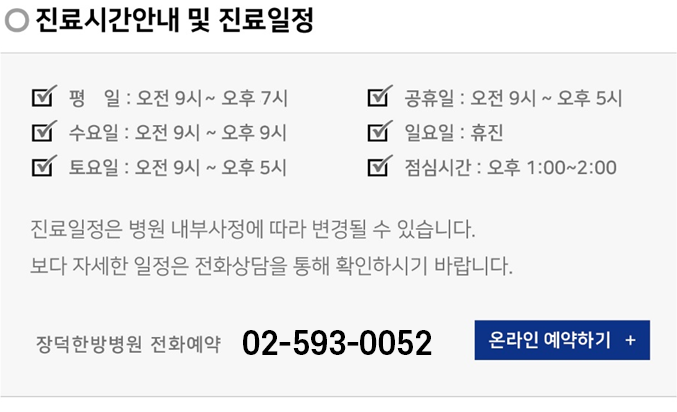 오전 : 9~13시 오후 : 14~19시 야간 : 19~21 진료일정